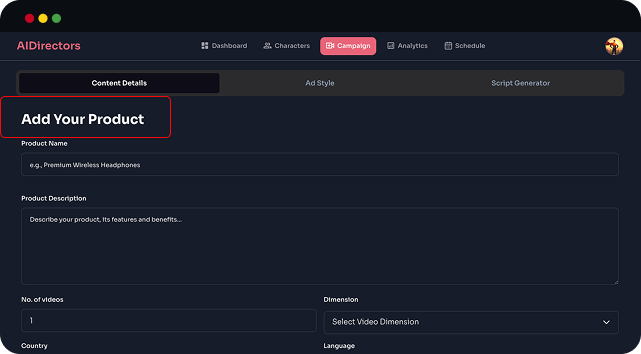 Drop that product into AIDirectors and watch the magic happen: