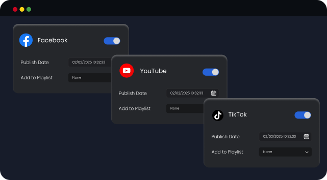 • Multi-Platform Publishing - YouTube, TikTok, Instagram, Facebook & More